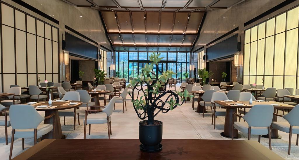 绍兴饭店·府山隐餐厅位于府山脚下,与绍兴饭店大堂遥相呼应,是以粤菜的精致烹饪方式与越菜的咸鲜风味结合为特色的粤菜创新菜,将越菜的“意”和粤菜的“形”巧妙融合,回味无穷。餐厅建筑风貌融入府山山水意境,环境高雅。餐厅拥有五个主题包厢及一个多功能宴会厅,是商务招待、喜宴活动、沙龙年会、亲友聚餐的首选之地。同时,结合节假日,餐厅还有适合游客及家庭聚餐的特色菜肴、特色下午茶等餐饮服务,让您在府山隐品味美食,享受美好。
