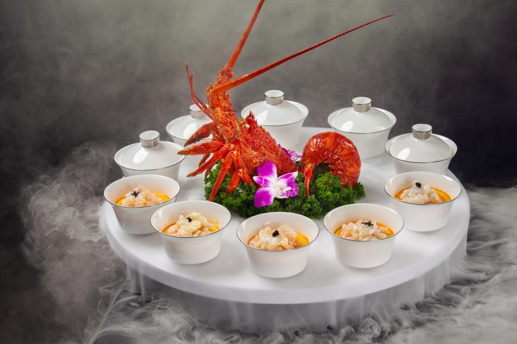 府山隐以粤菜的精致烹饪方式与越菜的咸鲜风味结合,特色菜品有小肥鹅吞鲍鱼,刺身东星斑、沙漠寻宝、龙腾四海、烤乳鸽、官燕蛋挞等。小肥鹅吞鲍鱼刺身东星斑广式蒸东星斑黑松露石锅花胶龙腾四海沙漠寻