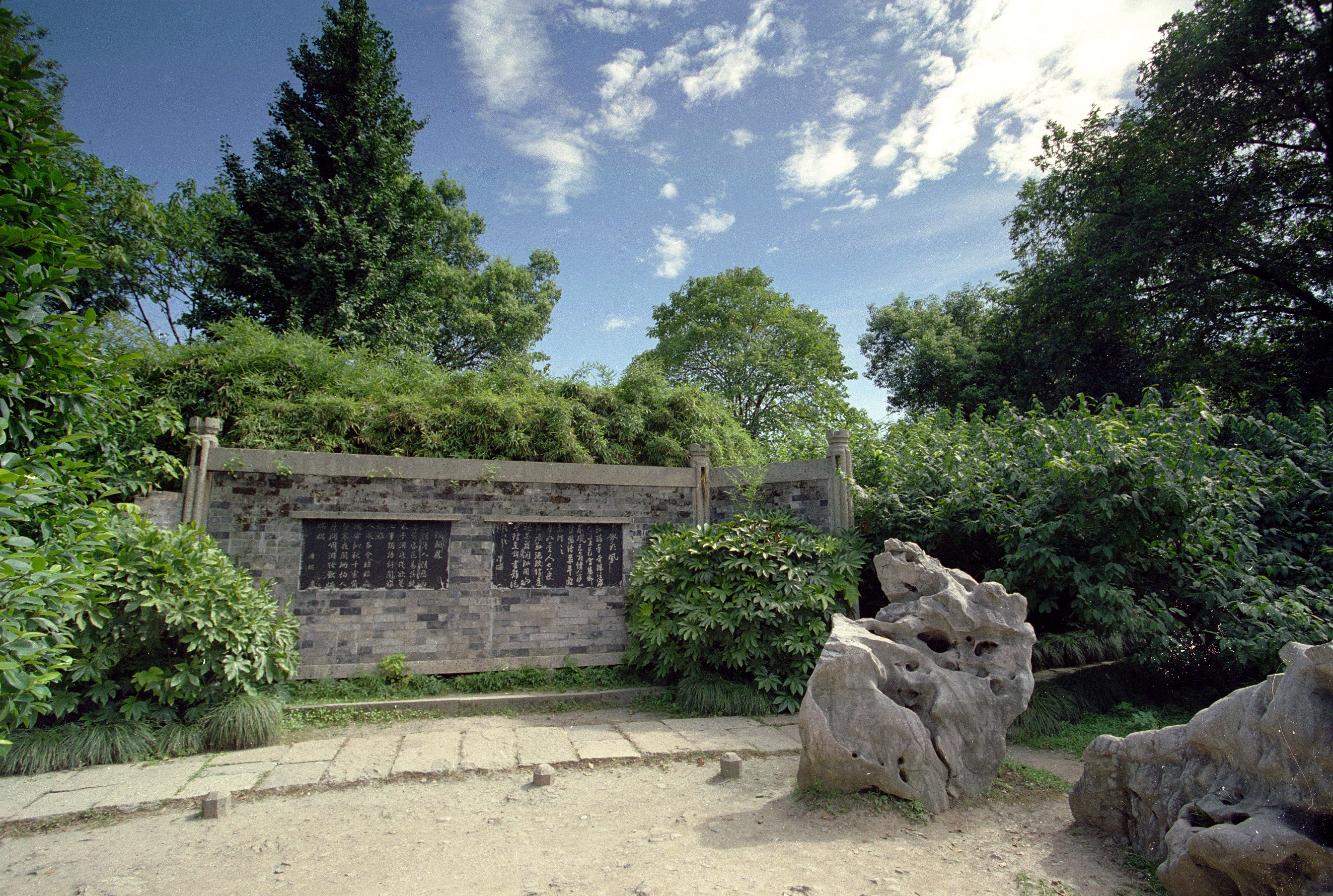 断云石在沈园入口处,陆游曾写过诗句“断云幽梦事茫茫”,“断云”谐音“断缘”,此石中间断开,但依依不愿分离,向人们诉说陆游和唐琬的爱情悲剧,点明沈园的主题