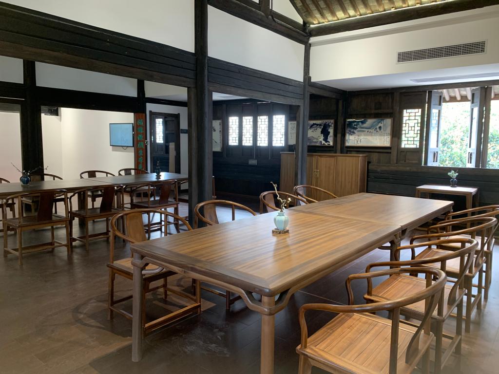 台门二楼为开放式的茶室空间,北邻青藤书屋,临窗观望古宅一览无余,室内环境清幽,家具古朴,可供游客或团队举办活动或雅集。馆区会在特定的时间开展非遗老师讲故事、研学游等各种活动