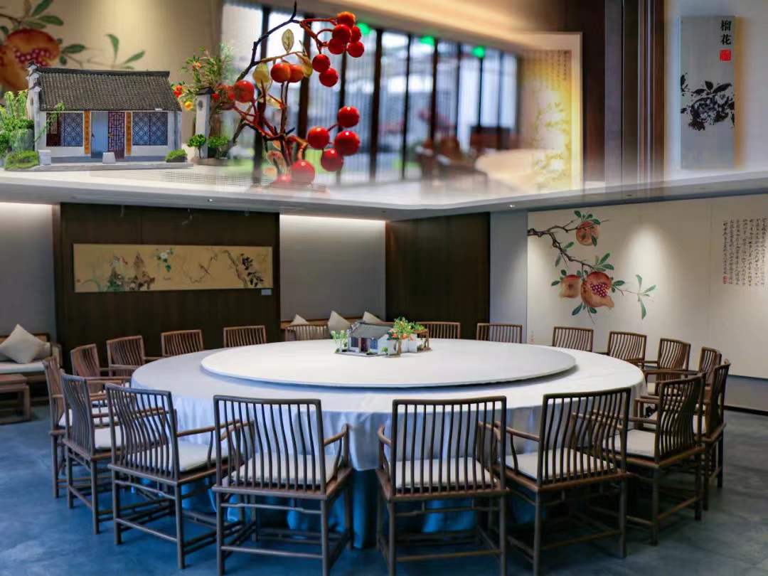榴花斋主题餐厅位于青藤广场西侧。根据绍兴传统民居样式,庭院与沿廊俱备,奇石与竹木并存,打造舒适优雅的就餐环境。一楼有雅致的庭院景观,二楼有面向青藤广场的观景平台,设计大气合规