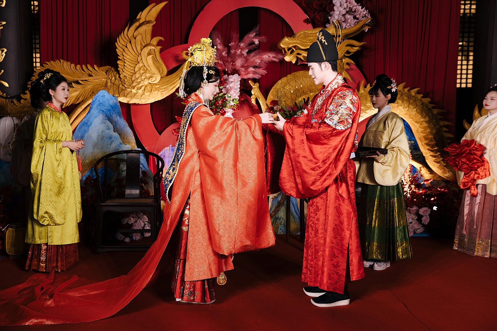 活动背景与目标:五百年前,圣人王阳明在此讲学传道,留下天泉证道的故事;五百年后,在青砖黛瓦的阳明故里,我们以一场明制婚礼重现华夏礼乐之美。新人着明制婚服,行古礼,拜圣人,在心学文化的精神故土上,许下白首之约。为了增加景区的游玩性,丰富游客的游玩内容,增加游客在景区内的停留时间,阳明故里策划了明制婚礼演出,让游客近距离看到一场明代婚礼,了解古代婚礼仪式。活动内容与流程:1.抛绣球:新郎在王假山下赋...