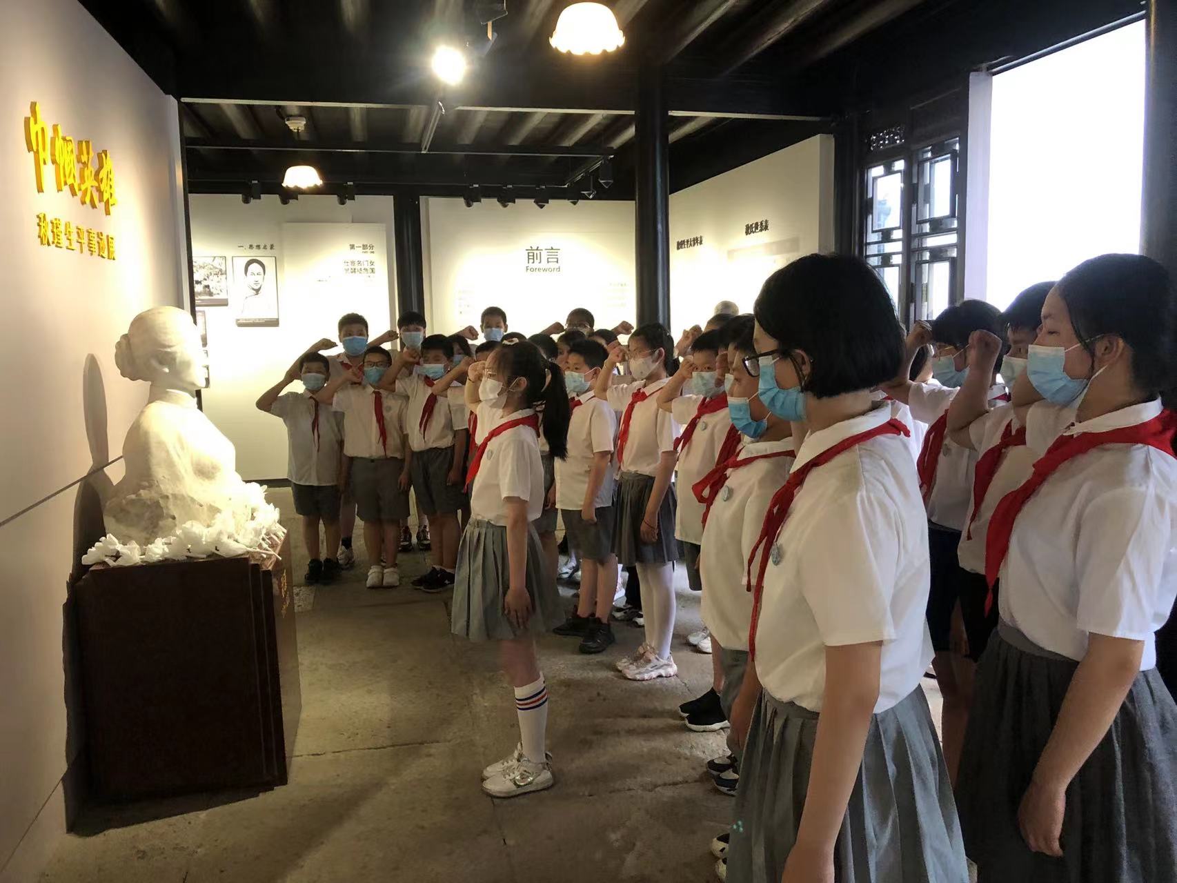 【活动内容】1.重温入队誓言在秋瑾生平事迹展厅的雕像前进行入队宣誓。2.实地参观讲解在讲解员的带领下,了解秋瑾的生平事迹,为心中的理想而奋斗。3.朗诵秋瑾诗歌通过朗诵与解析,感受秋瑾的爱国情怀